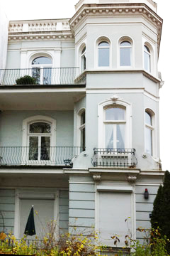 … und so sieht die Bellevue Nr. 1 heute aus. Seit der vorigen Jahrhundertwende wird sich nichts Wesentliches verändert haben. Die Bausubstanz scheint unverändert. Um 1900 wohnte Julius Friedrich Jacob Oetling hier. Er war Großherzlich-Mecklingburgisch-Schwerinischer Consul. Ihm gehörte das Haus.