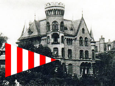 An dieser Stelle hatte der Reeder Adolph Kirsten 1902 das Haus mit Turm gebaut. Es sah der Wentzelburg am Rondeelteich sehr ähnlich. Die Reederei-Flagge hatte den Spitznamen gestreifter Speck.